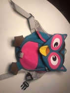 Børnetaske, Sød ugle-børnetaske til feks dagpleje-, vuggestue-, eller børnehavebarnet. Er brugt af ét barn i kort tid.
