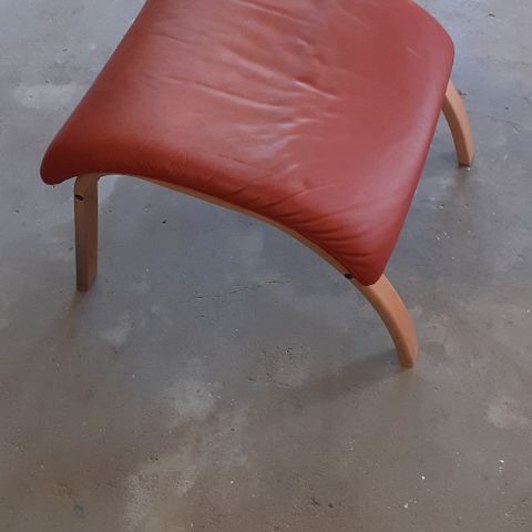 Fodskammel, træ, Gammel fodskammel, trænger til nyt betræk