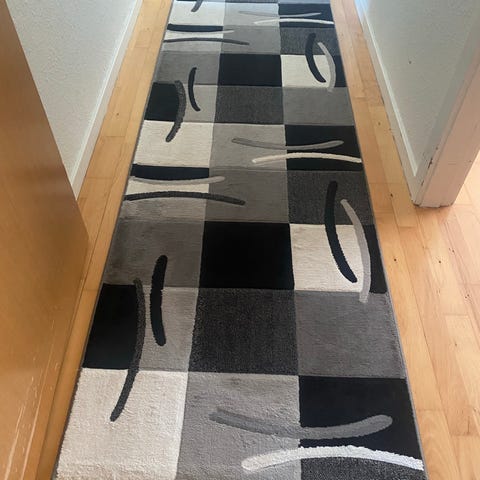 Gulvtæppe, b: 70 l: 180, OYOY bilbane, har lidt brugsspor, farve: råhvid