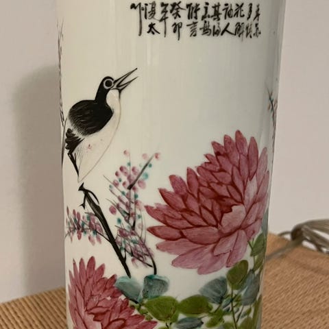 Lampe, Hatstand lampe, Rigtig flot og tung harstand lampe. Med flot motiv
