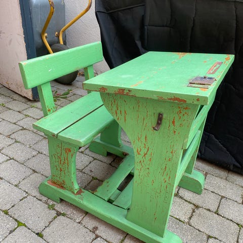 Skrivebord, Flot olieret/hvidmalet skrivebord, lavet i “gammel stil og er tappet sammen” bygget af en lokal tømrer så det er virklig et robust bord, der vil være perfekt til et børneværelse med Ridder/prinsesse/viking tema. Der er ikke mærker efter tuch/maling på bordet. Dette er et unikt bord og der findes ikke andre magen til??