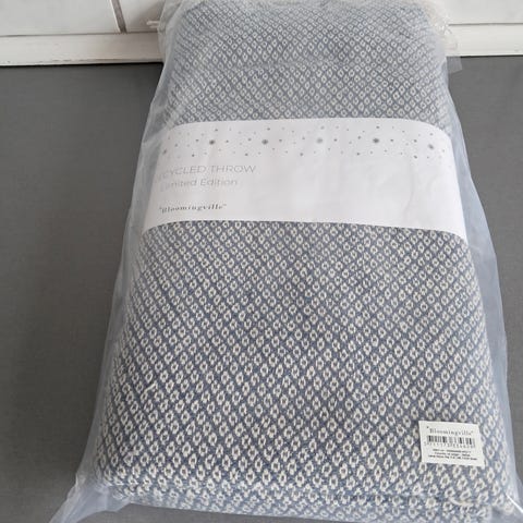 Har ligget kortvarigt over armlæn på sofa, men aldrig brugt.