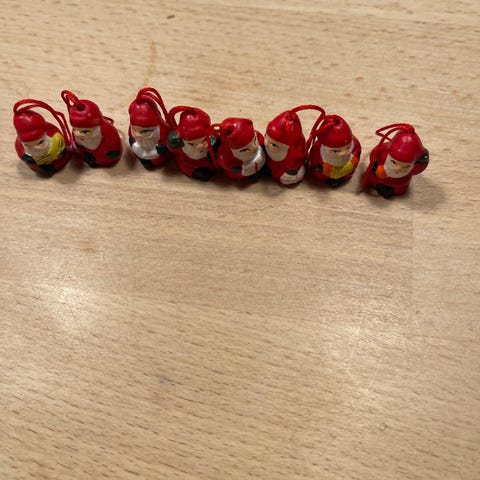 De yndigste små julenisser Der står på en lille træplade der er blot 3 cm ø