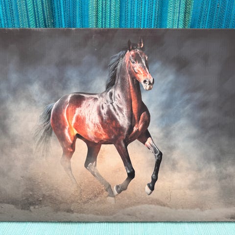 Hestebillede trykt på lærred. Uden fejl og mangler, perfekt stand. Fra ikke-ryger hjem. Skal afhentes i Jelling.