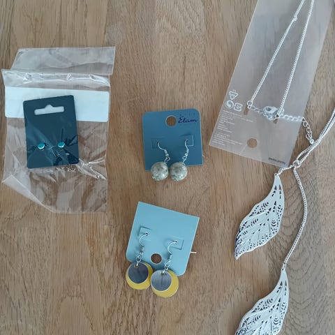 Har flere øreringe, halskæder, armbånd og ure