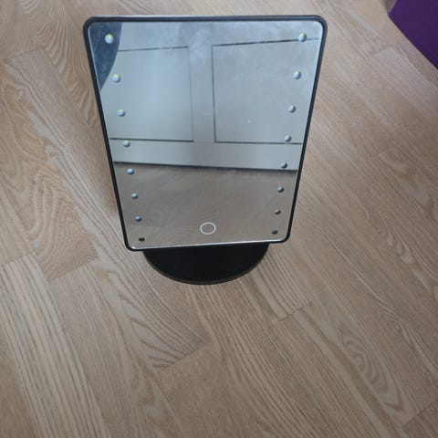 Spejl, Kosmetikspejl/makeupspejl, Praktisk kosmetikspejl Ø-17 cm. med saksearm til montering på væggen. Spejlet kan trækkes 55 cm ud fra væggen, har 3 gange forstørrelseseffekt og kan vippes og drejes, hvorfor det er ideelt til lægning af makeup eller barbering. Fremstillet i forkromet rustfri stål. Helt ny og ubrugt i emballage. Fra ryge - og dyrefrit hjem.