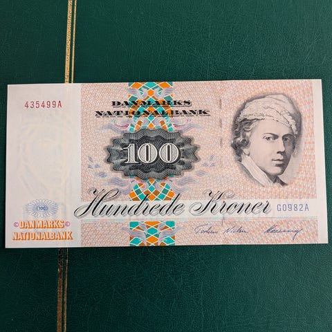 Danmark, sedler, 100, 1993, Pæn og ufoldet 100 kr. seddel med