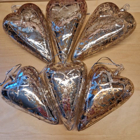 Glas hjerter, Fine håndlavede klare glashjerter med guldsnor klar til ophængning.