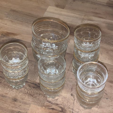 Glas, Italienske guldstribede shotsglas, I alt 6 stk. Sælges samlet. Fejler intet.