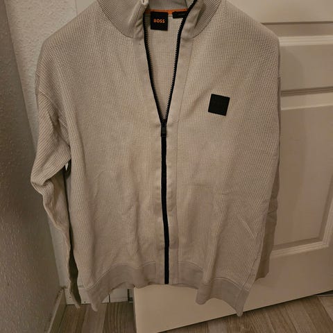 Cardigan, Boss, str. L, Blå, Polyester, bomuld og elastan, God men brugt, Køber betaler fragten