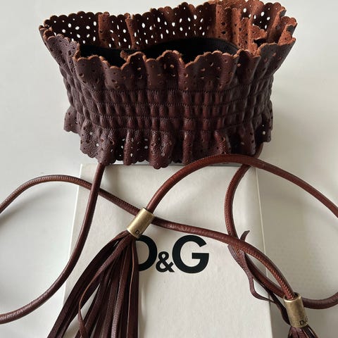 Dolce & Gabbana, str. 90 cm, Sort, Læder, Næsten som ny, Flot bælte med en extra lille finesse i form af en lille kæde med hængelås. Bæltet kan bruges både som pyntebælte uden på en skjorte eller strik og som "alm" bælte. Det er 4 cm bredt og halvplankt præget skind. Kommer i original kasse og dustpose.