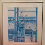 Tryk i ramme med passepartout , Lars Svane, motiv: Blomster i vindueskarm