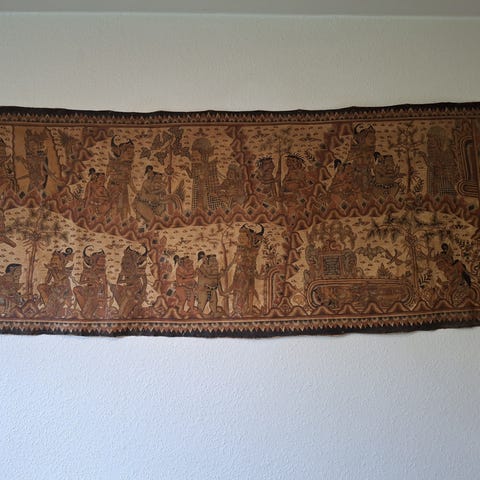 Vægtæppe, Tibetansk?, motiv: Livets hjul ?, Thangka. Kan du fortælle noget om det? Er det fra Tibet eller Nepal måske eller er det indisk? Skal sælges billigt og hurtigt giv et bud mindst 80 år gamle alle bud velkomne Tibetansk Thangka / Mandala fra Nepal eller Tibet. Mindst 80 år gammel. Håndmalet. Sjældent motiv. Vajrasadhu - Buddha - Buddhisme - Tibet - religion - religiøst motiv - østen