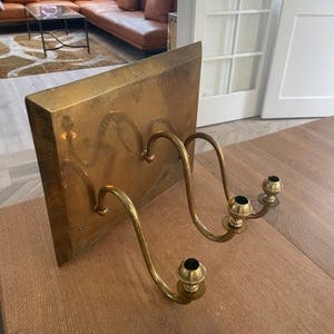 Funkis messing lysestage, Antik, Smuk funkis antik trearmet messing lysestage.