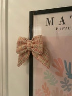 Julesløjfe - julepynt, Sød Chunky julesløjfe - brug den til pynt i hjemmet, fx her på kanten af et billede. Kan også hænge på dørhåndtag, kanten af spejlet, på reolen etc.