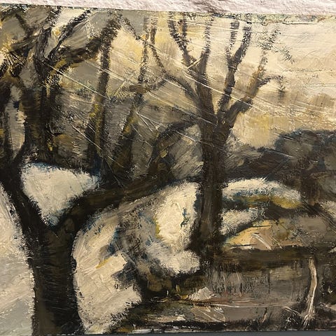 Andet, motiv: Landskab, stil: Andet, b: 61 h: 66, Flot vinterlandskab.