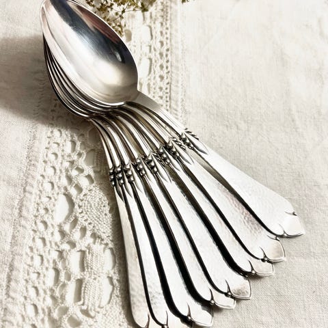 Bestik, Lange skeer caffelatteskeer , Boda Buffe, Fire caffelatte-skeer fra Sverige, serien “Boda Buffe” design af Signe Persson-Melin