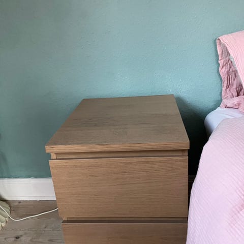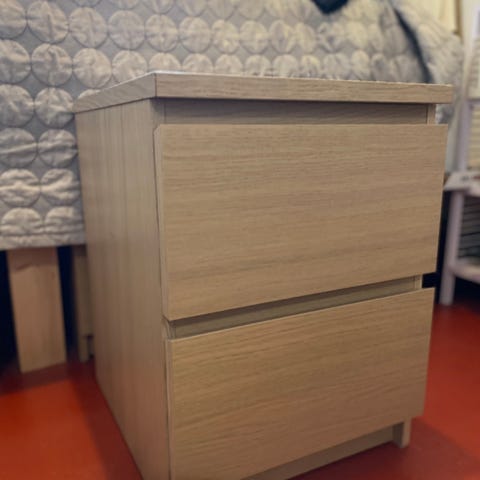 Sengebord, IKEA, Passer til IKEA Malm sengestel. Sættes på siden af sengen med medfølgende beslag.