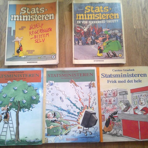 Statsministeren album 1-8, Album 1, 4, 6 og 7 har mærker efter klistermærker. De sælges for 10 kr stykket.
