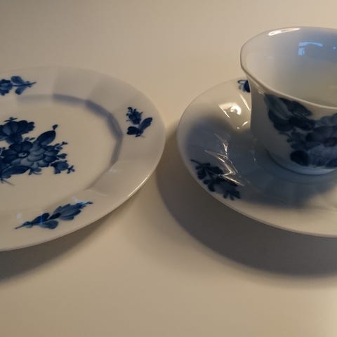 Porcelæn, Kaffekopper med underkopper, Blå Blomst. Kantet
