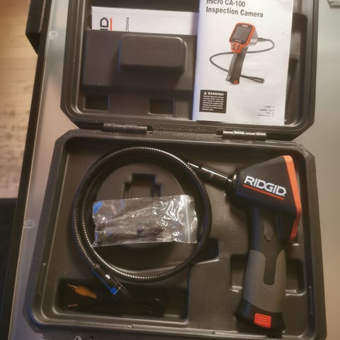 Inspektionskamera, Ridgid, Micro CA-100. Håndholdt inspektionskamera i mikro-størrelse til lokalisering af problemer i f.eks. hulrum i vægge og mure, afløb, eltavler, motorer etc.