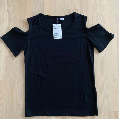 T-shirt, HM, str. 36, Sort, Næsten som ny, Sort t-shirt med et blonde stykke for oven både foran og bagved.