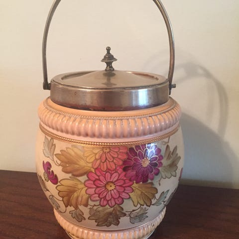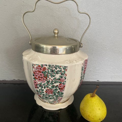 Porcelæn, Kiksespand, Wedgwood, Flot antik kiksespand med udskæringer fra engelske Wedgwood. Højde 13 cm.