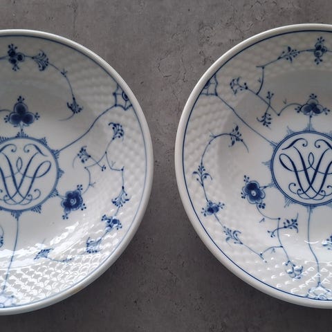 Standen er fin, dog har den ene af de 6 tallerkener et lille skår i glæden, måler 16 cm. Jeg tror man kalder denne størrelse for kuvert tallerken, pris pr. Stk. 125,- samlet køb 600,-
