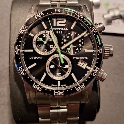 Herreur, Certina, Fedt herreure fra Certina . Uren er fra 2018 kvtt haves Idag fik helt nyt batteri fra Vibholm i Århus. Ny pris 4500-5200kr. Ingen skam bud !! Certina - DS Podium Chrono Herreur - bicolor stål C0344172208700