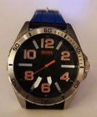 Herreur, Hugo Boss, Flot Hugo Boss ur med store tydelige orange tal og hvide sekundinddelinger i kanten på sort urskive. Uret er fejlfrit og meget lidt anvendt. Nyt batteri indsat af urmager.
