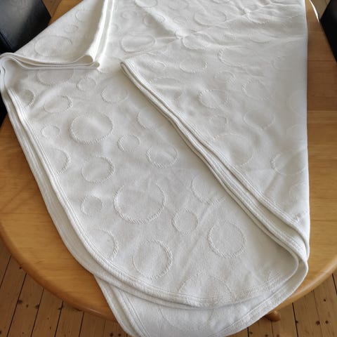 Sengetæppe, Vides ikke, Til dobbeltseng, 265 x 250cm Meget lækkert groftvævet, - 2 små pletter, kan formentlig fjernes ,- derfor prisen