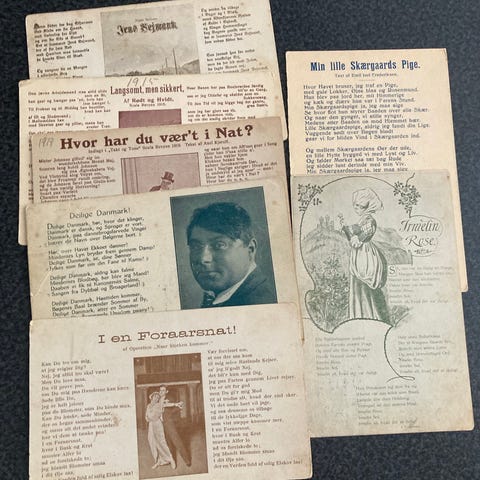 Postkort, Gamle sange på brevkort. Sælges samlet.