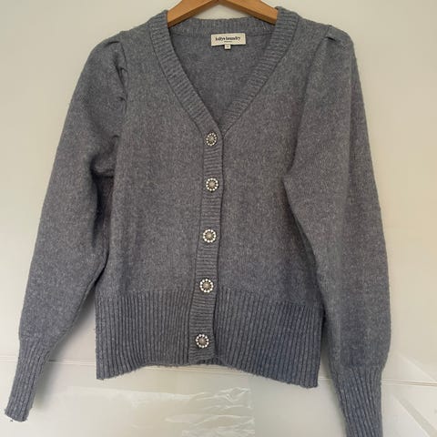Cardigan, Lollys Laundry, str. 38, Grå, God men brugt, Blød cardigan i strik med tryk knapper og 2 lommer i str. S. Brugt men pæn stand.