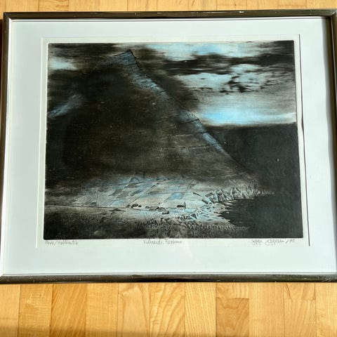 Litografi, Hanne Jette, motiv: Færøerne, Litografi (tror jeg) af Hanne Jette, motiv fra Færøerne. 2006. Nr 42/50 stk.