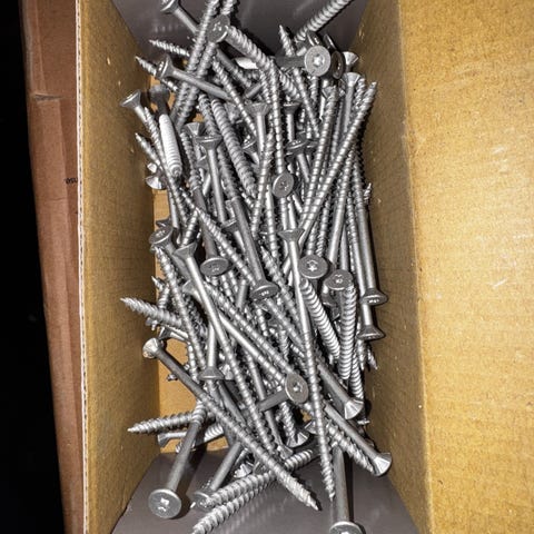 Træskruer, 16 stk træskruer 9 stk 110 mm 7 stk 130 mm sælges til 30kr og her medfølger 14 brugte ravplugs
