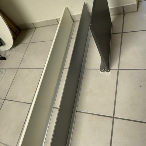 Anden reol, Montana, b: 47 d: 30, 4 stk nye og ubrugte Montana Skyline væghylder uden aluminiums skinner, skruer og rawlplugs, så altså kun selve hylderne 46,8x30cm. Prisen er kun 600kr samlet inkl forsendelse eller 500kr afhentet på adressen.
