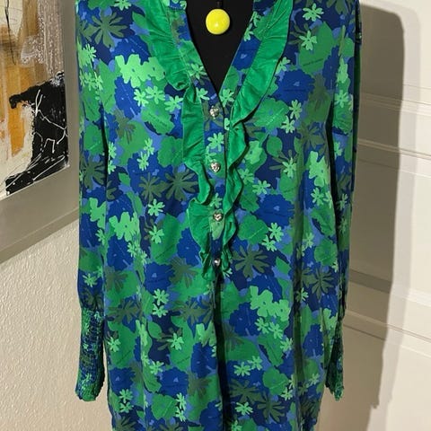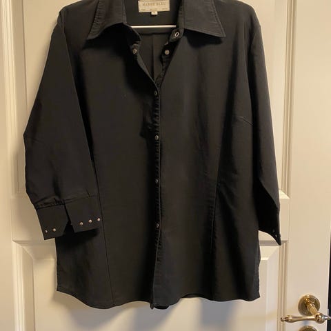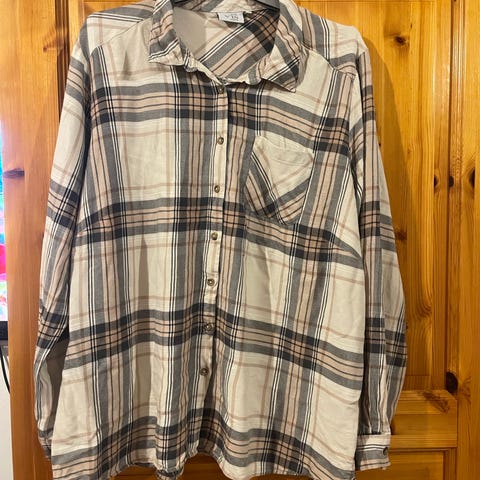 Skjorte And less str. 34, Gråsort ternet lang blød skjorte