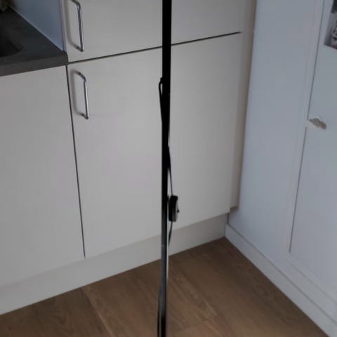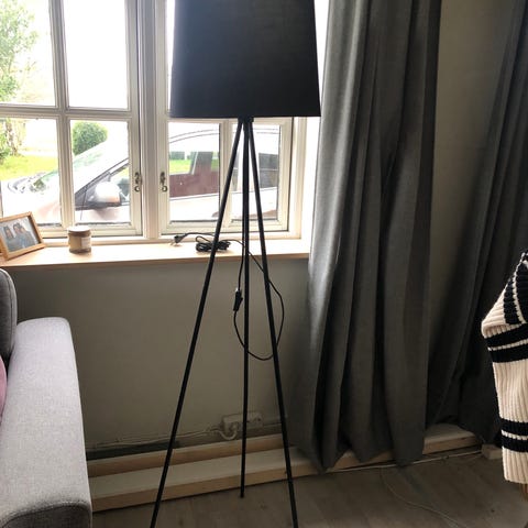 Standerlampe, Sort gulvlampe, med hvid skærm,klart blødt lys.