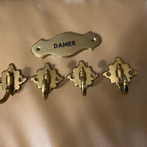 2 ældgamle messing knager, 100 år gl., 2 ældgamle messing knager