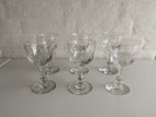6 flotte, gamle hvidvinsglas med facetsleben stilk og ovale slibninger på kummen i serien “Derby” fra Holmegaard. H. ca. 13/13,3 cm og Ø 7 cm. Glassene blev produceret mellem 1891 og 1945 på danske glasværker. Alle er i fin stand. Prisen er for alle. Sender gerne.