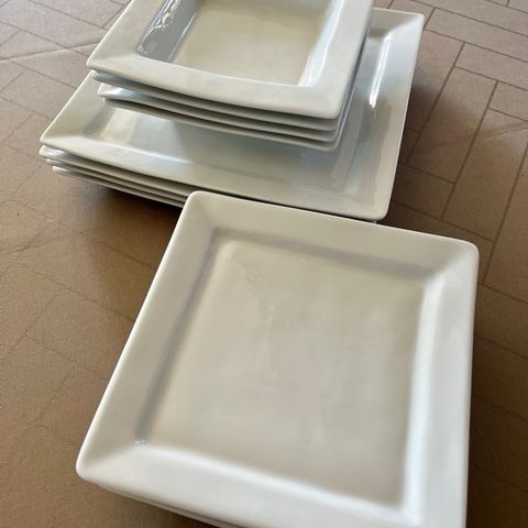 4 Stk. firkantet råhvide tallerkner. 100% intakte. Sælges samlet.