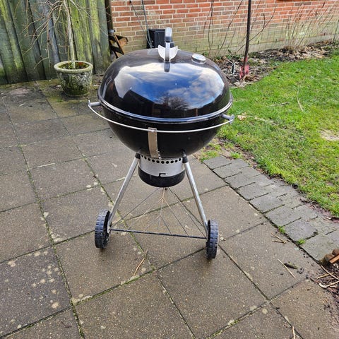 Kuglegrill, Weber, Fin grill m starter og dækken, tilkøb ring til spyd, og spyd m motor for 250kr