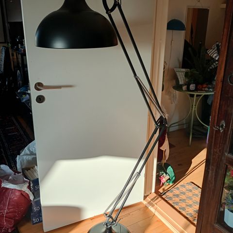 Standerlampe, Elegant standerlampe med kraftigt lys. Højkvalitetskrom. Justerbar i højde og kan drejes. Nypris 1200,-