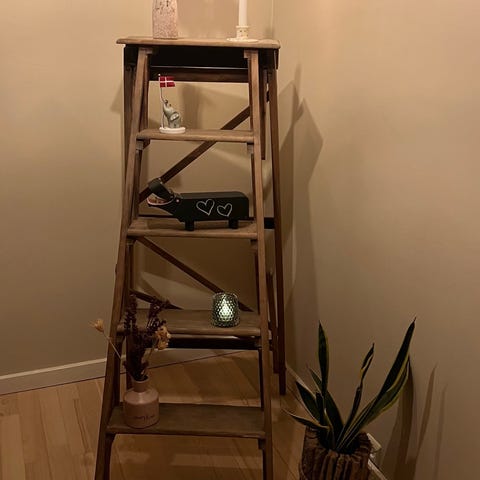 140 cm meljem stigeben ved gulvet. Fin som reol med hylder eller til brug.