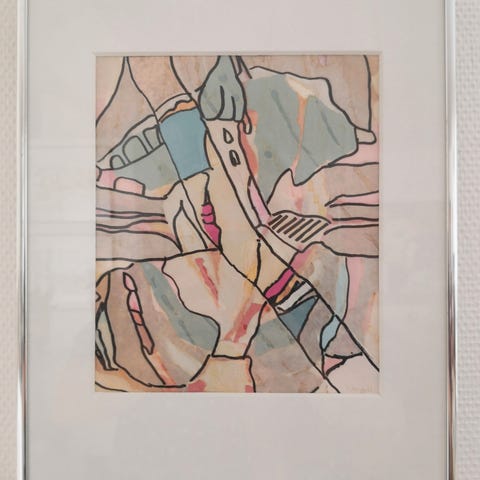 Grafisk tryk, Kirsten Bøggild , motiv: Tålmodighed, b: 40 h: 56, mont. i alu/guldramme, signeret i trykket med passepartout og nummereret. Fast pris.