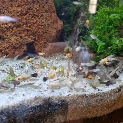 Poecilia Sphenops Gold Molly , 10+ stk., Flotte Guld Molly unger med en lille smule sort tvist, af egen opdræt sælges.