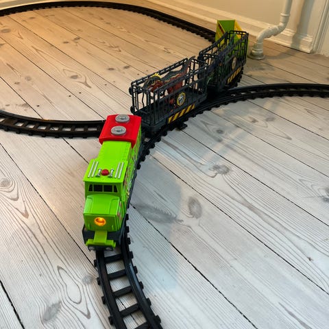 Lokomotiv, Dino valley, Grøn ca 30cm lang lokomotiv togvogn