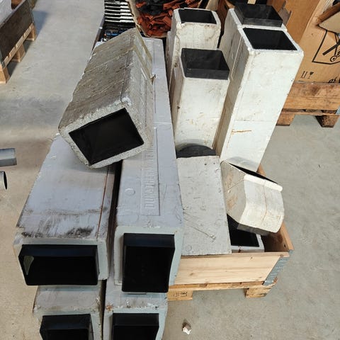 aftræksrør, mange forskellige aftræksrør i forskellige dimentioner sælges , fra 50 kr stykket , bla. 150 cm 14,5 x14,5 plus et stk der er skåret i , 4 stk på 1,5 m 14,5 x 9,5 , 4 stk på 1 m 14,5 x 14,5 og 1 stk 1m 14,5 x 9,5 plus en masse andet bla . 10 stk bøjninger , fra 50 kr