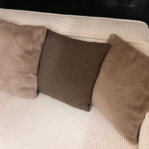 Pels puder i råhvid og mørkebrun m/inder puder i str 40 x 40 cm. Købt i Ilva og aldrig brugt. Fra ikke-ryger hjem. Beses og købes i Rødovre. Sender ikke. Begge puder 500 kr. Under halv pris. Kom også gerne med et bud.