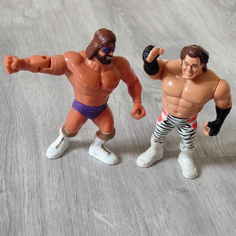 Wrestling Champions / Galaxy Warriors, Sungold?, Har fundet mine to gamle mega fede Wrestling Galaxy/Champions figurer fra 80’erne. Hulk Hogan og Apollo Creed lookalike. Begge to med bælte. En total Knock Off Bootleg af MOTU. Disse to modeller er med Flat boot og Circular Wristband. Made in Hong Kong. Sælges samlet.